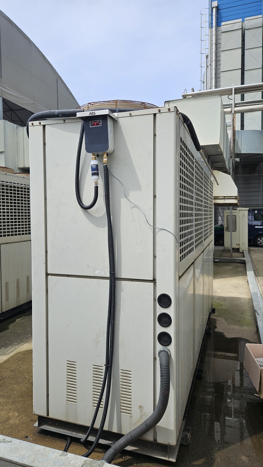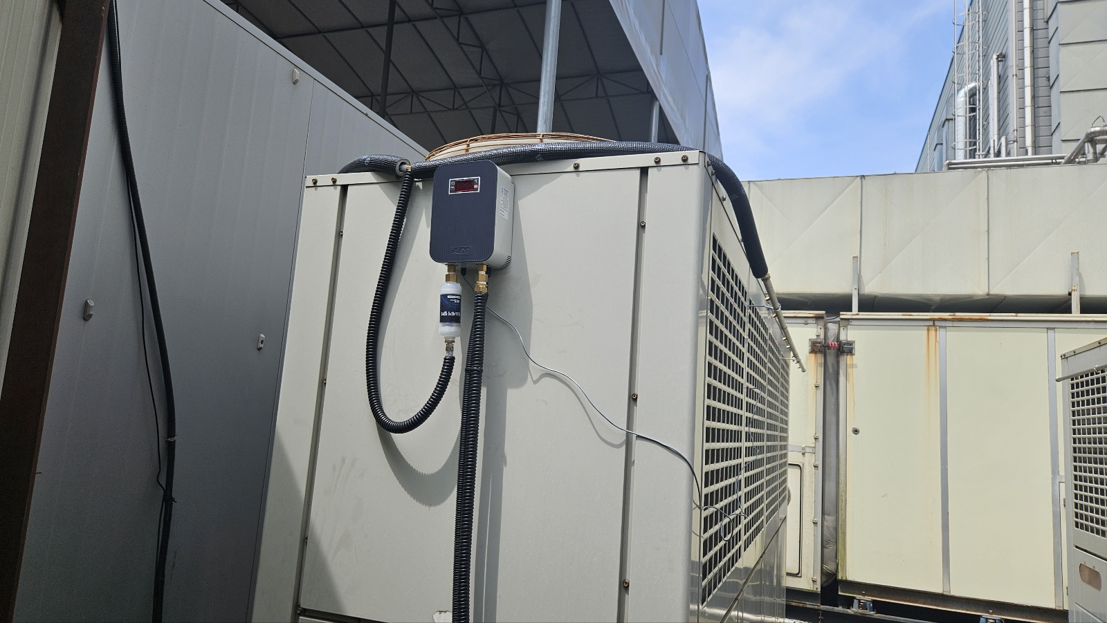 IESS는 냉각기의 외부 열교환기에 **미세한 물 안개(살수)**를 분사해, 열교환 효율을 높여줍니다. 쉽게 말해, 뜨거워진 에어컨의 ‘심장부’를 시원하게 식혀주는 장치라고 볼 수 있습니다. 이렇게 되면 냉방기는 훨씬 가벼운 부하로 같은 성능을 낼 수 있고, 결과적으로 전력 사용량이 크게 줄어듭니다.