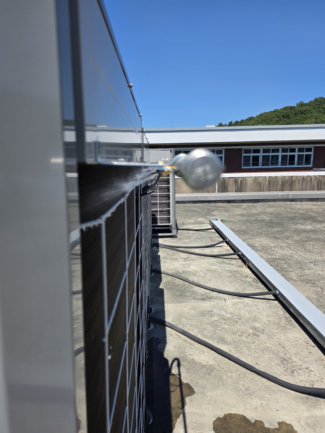 이런 상황에서 교육청은 냉방 품질은 유지하면서도 전력 사용을 줄일 수 있는 스마트 솔루션을 찾게 되었고, 그 결과 에어컨 살수제어장치 IESS 시스템을 경북고등학교에 시범적으로 설치하기로 결정했습니다.